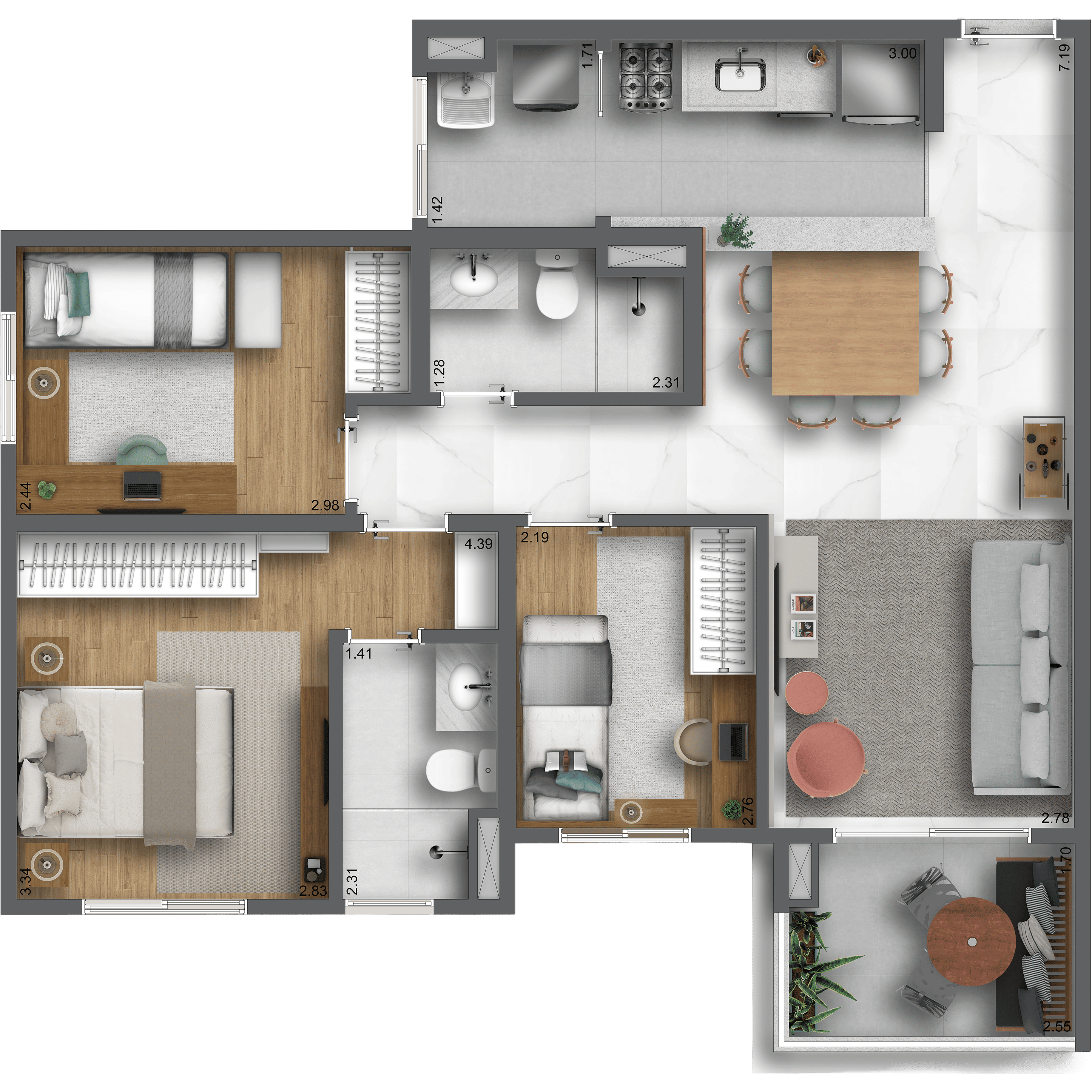 Aptos 3 Dorm. (1 suíte*)